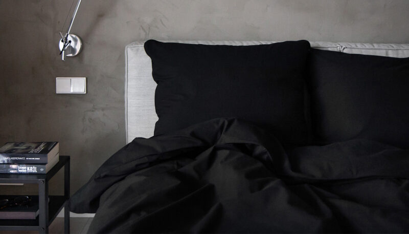 Černé povlečení je kombinací elegance a hloubky barev, perfektní pro milovníky výrazných akcentů v ložnici.