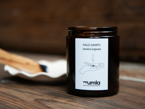 Sójová svíčka s jemnou vůní Palo Santo. Unikátní dřevitá vůně s citrusovými tóny.